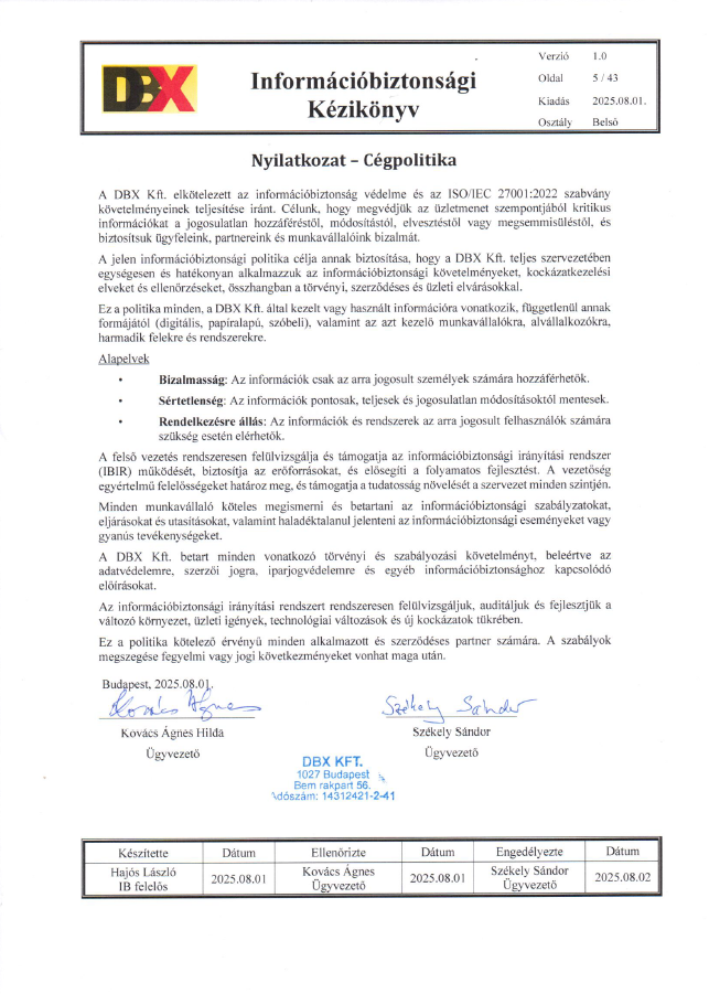 A modern üzleti életben az információ a legértékesebb vagyon. Az adatok védelme nem csupán egy technikai feladat, hanem alapvető felelősség ügyfeleink, partnereink és munkatársaink iránt. Éppen ezért, nagy örömmel jelentjük be, hogy cégünk elindította a felkészülést az ISO 27001 szabvány szerinti tanúsításra, ezzel is megerősítve elköteleződésünket a legmagasabb szintű információbiztonság iránt.