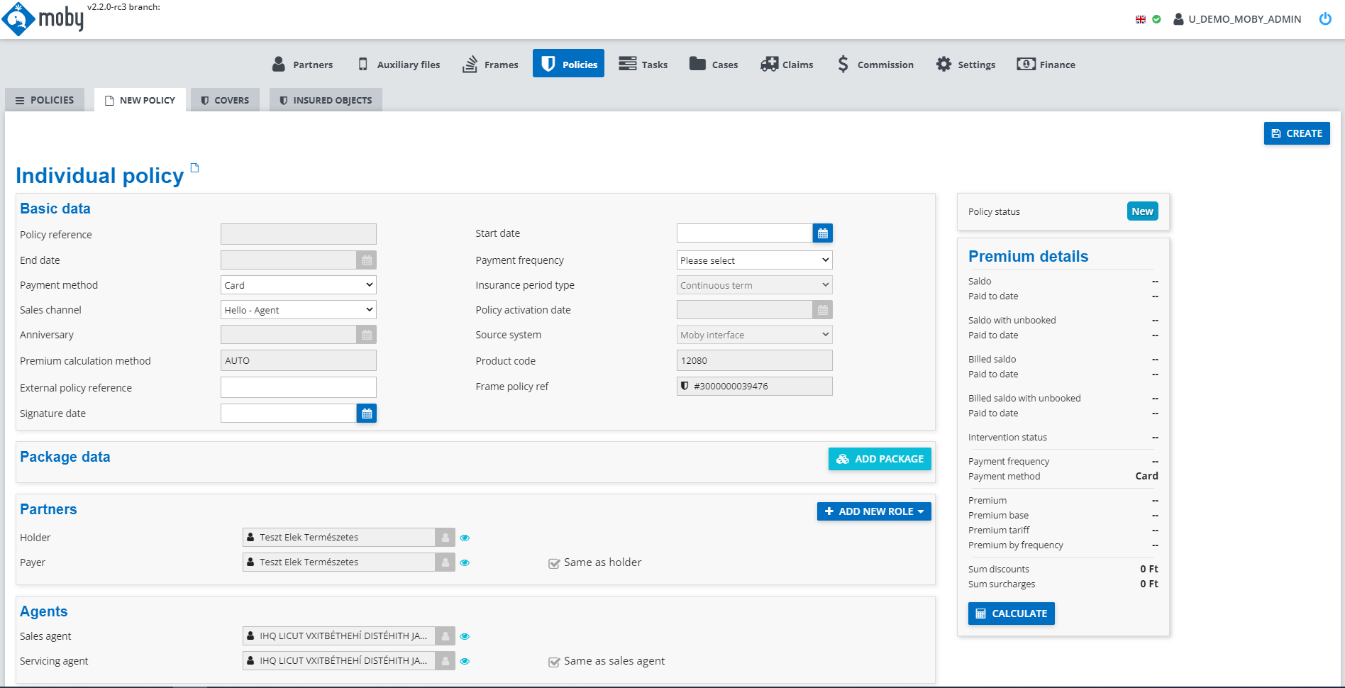 The Moby Policy Module provides comprehensive policy management which includes fee calculation, policy data validation and the support of the whole policy lifecycle (fee calculation - proposal - policy, with versioned data storage).